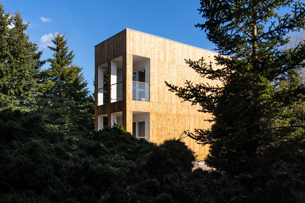 W 2022 r. w Wielkim Łęcku (woj. warmińsko-mazurskie) wybudowaliśmy dwukondygnacyjny budynek prototypowy wykonany w technologii BIOPAN components. Obejmuje on dwa pokazowe mieszkania 1-osobowe o powierzchni 30 m2 każde. Budynek został zmontowany z przygotowanych w zakładzie prefabrykacji komponentów konstrukcji głównej, ścian, stropów i stropodachów. Prace wykonane na budowie objęły hydroizolację dachu i tarasów, wykonanie elewacji wentylowanej oraz wykończenie wnętrz. Budynek prototypowy został poddany testom (badania termowizyjne, test szczelności, badania jakości powietrza wewnętrznego, badania akustyczne), które potwierdziły zalety technologii BIOPAN components. Budynek prototypowy został wybudowany tak aby możliwy był jego demontaż i ponowne wykorzystanie komponentów budowlanych w innym obiekcie.